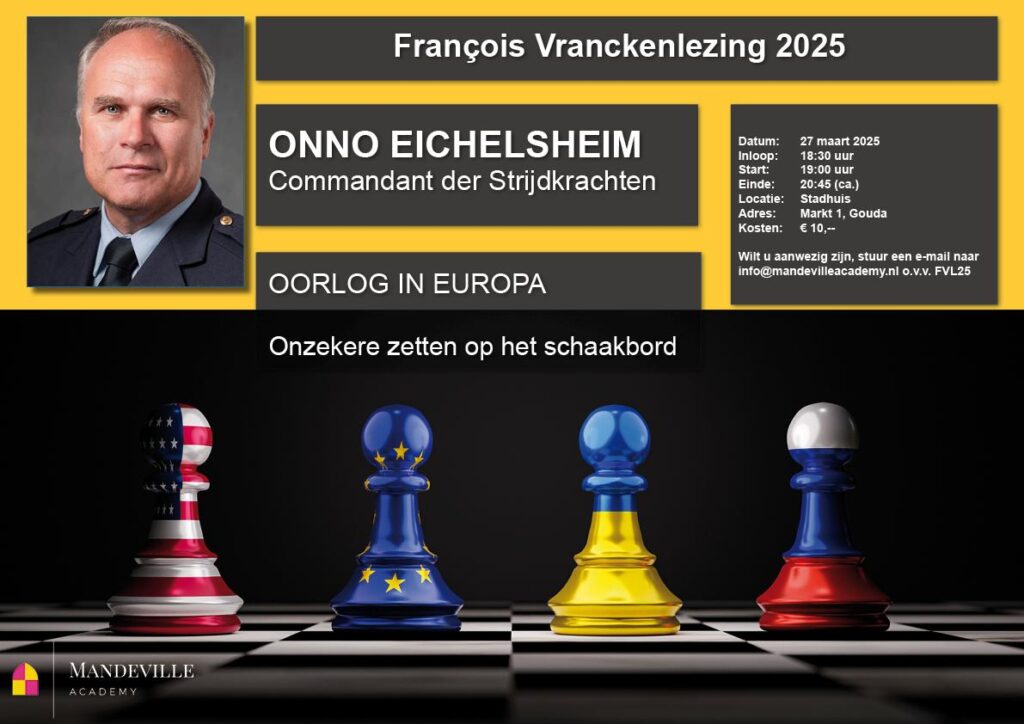 Onno Eichelsheim, Commandant der Strijdkrachten, spreekt de Francois Vranckenlezing 2025 uit op 27 maart aanstaande. De heer Eichelsheim geeft duiding over de wankele wereld waarin wij ons begeven. Wilt u aanwezig zijn? Zie bijgevoegde uitnodiging.